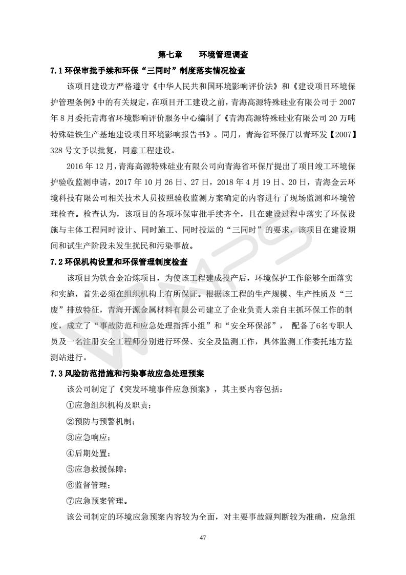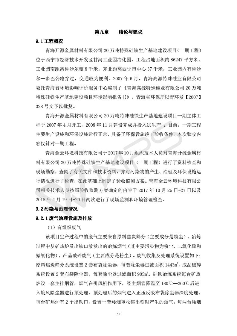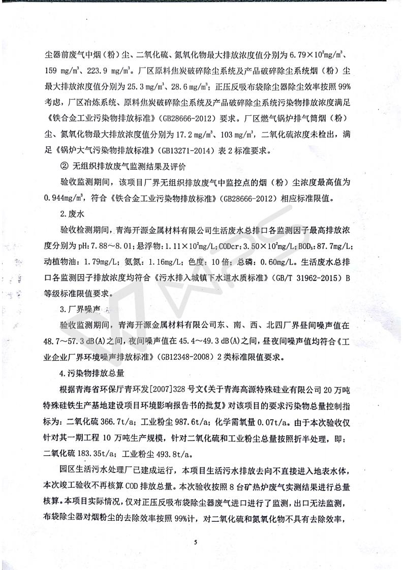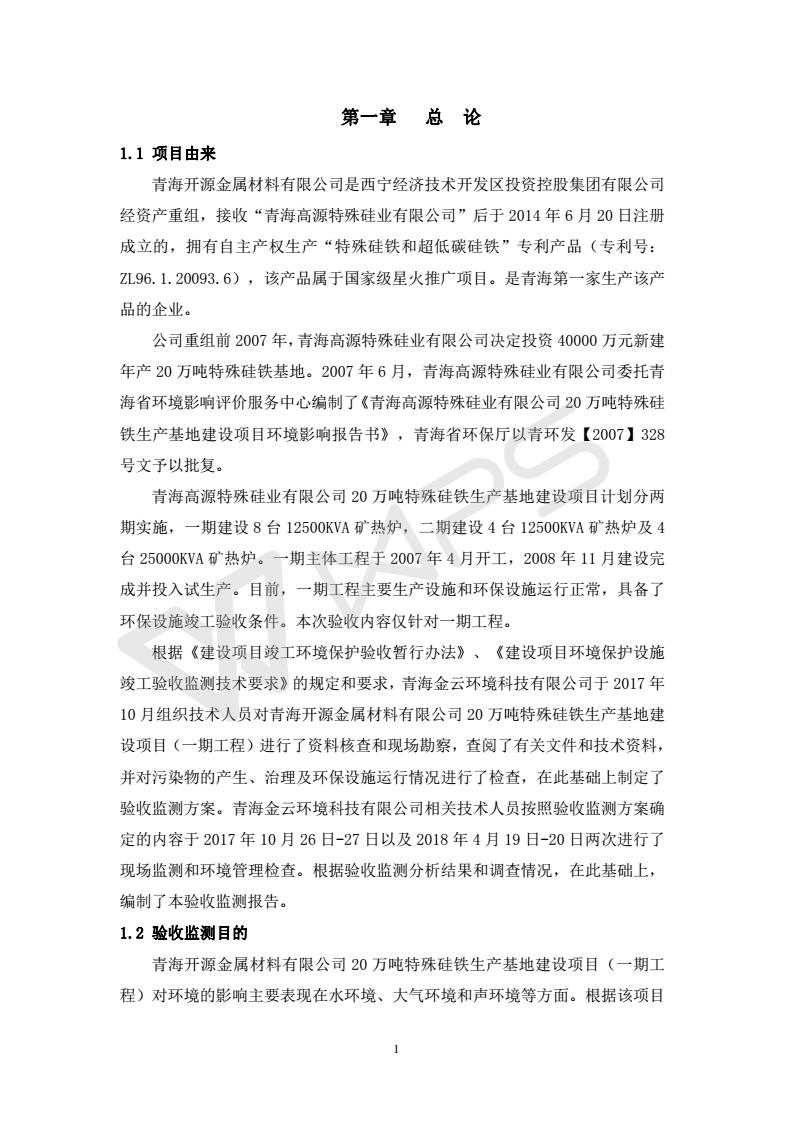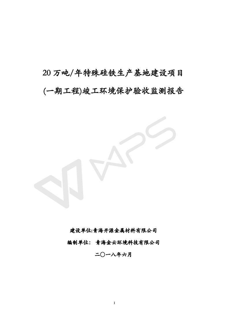 青海開源金屬材料有限公司20萬噸特殊硅鐵生產(chǎn)基地建設(shè)項(xiàng)目(一期工程)竣工環(huán)境保護(hù)驗(yàn)收報告書會后修改20180521
