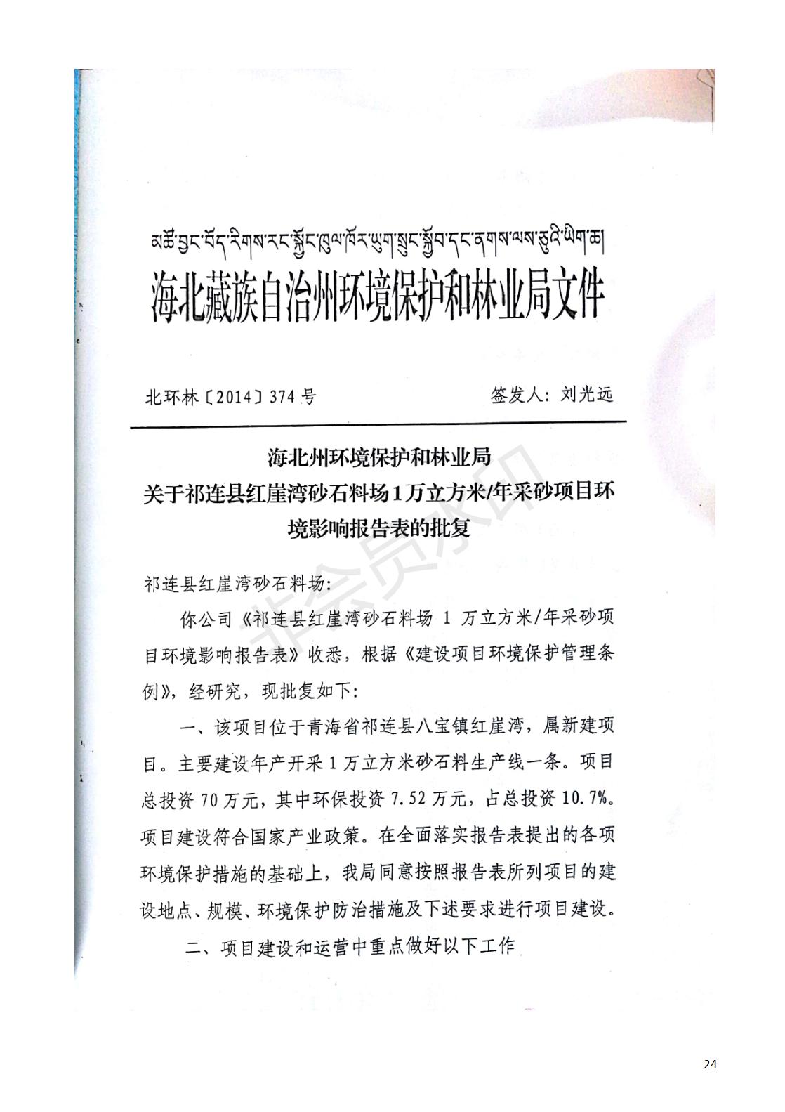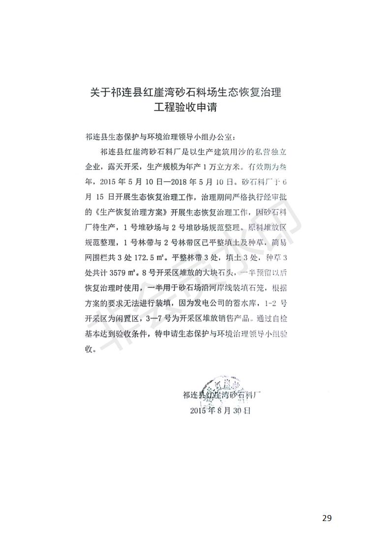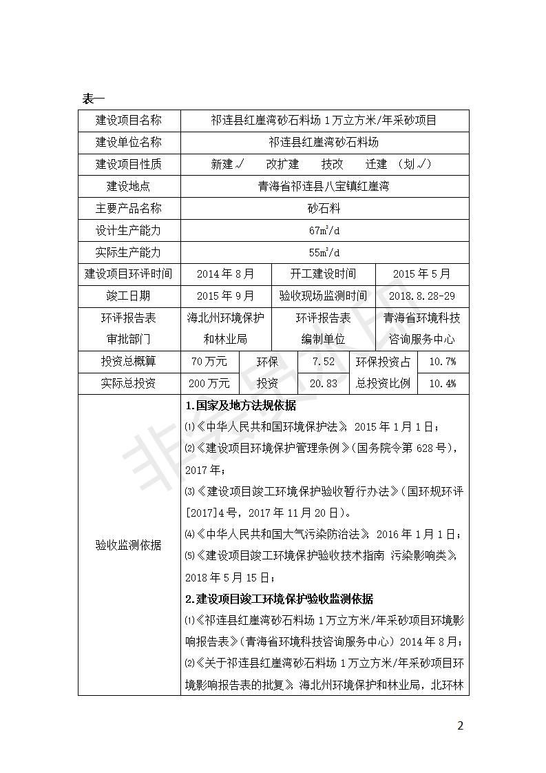 祁連縣紅崖灣砂石料場1萬立方米/年采砂項目竣工環(huán)境保護(hù)驗收監(jiān)測報告表公示