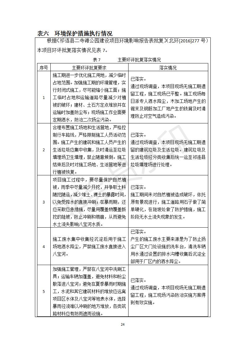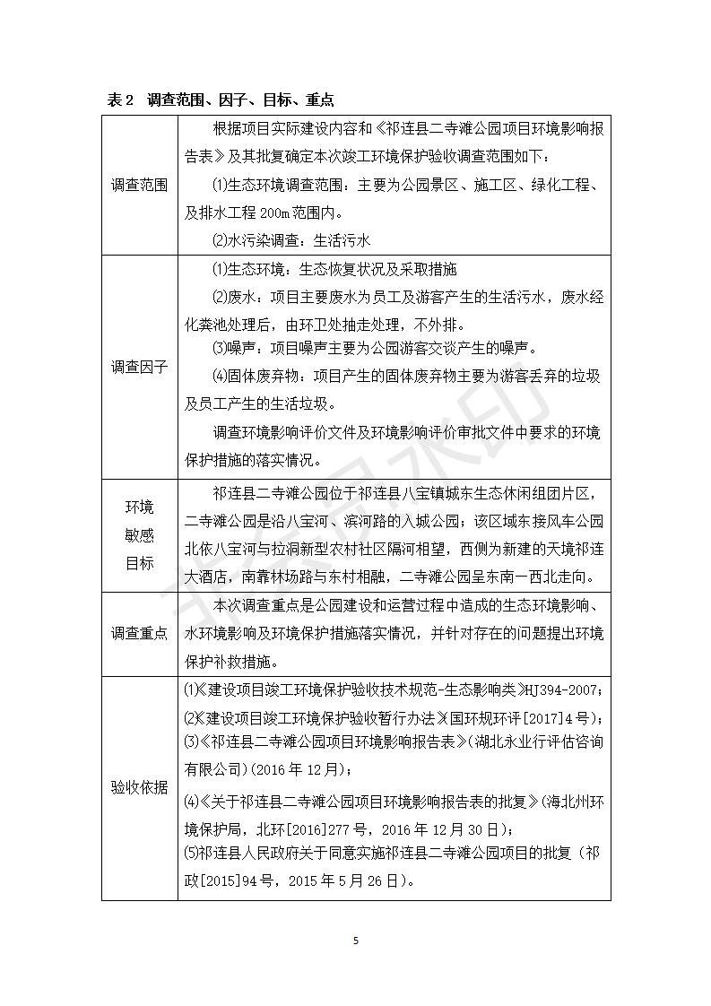 祁連縣二寺灘公園項(xiàng)目竣工環(huán)境保護(hù)驗(yàn)收調(diào)查表公示