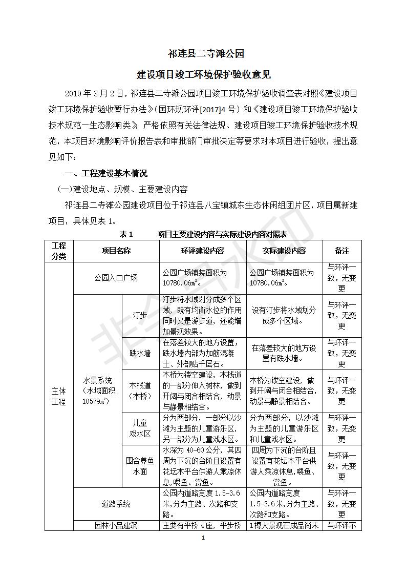 祁連縣二寺灘公園項(xiàng)目竣工環(huán)境保護(hù)驗(yàn)收調(diào)查表公示發(fā)布日期:(2019-3-11) 點(diǎn)擊次數(shù):2985 |