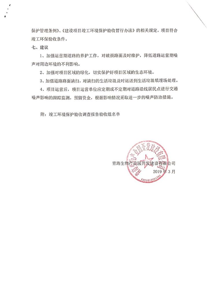 青海生物產(chǎn)業(yè)園開發(fā)建設(shè)有限公司劉家溝道路改造工程竣工環(huán)境保護(hù)驗(yàn)收調(diào)查公示發(fā)布日期:(2019-3-14) 點(diǎn)擊次數(shù):2980 |