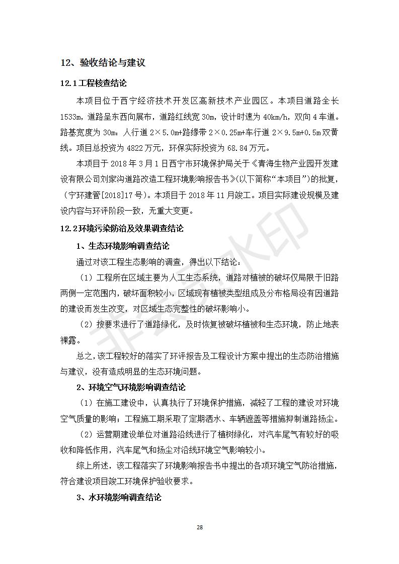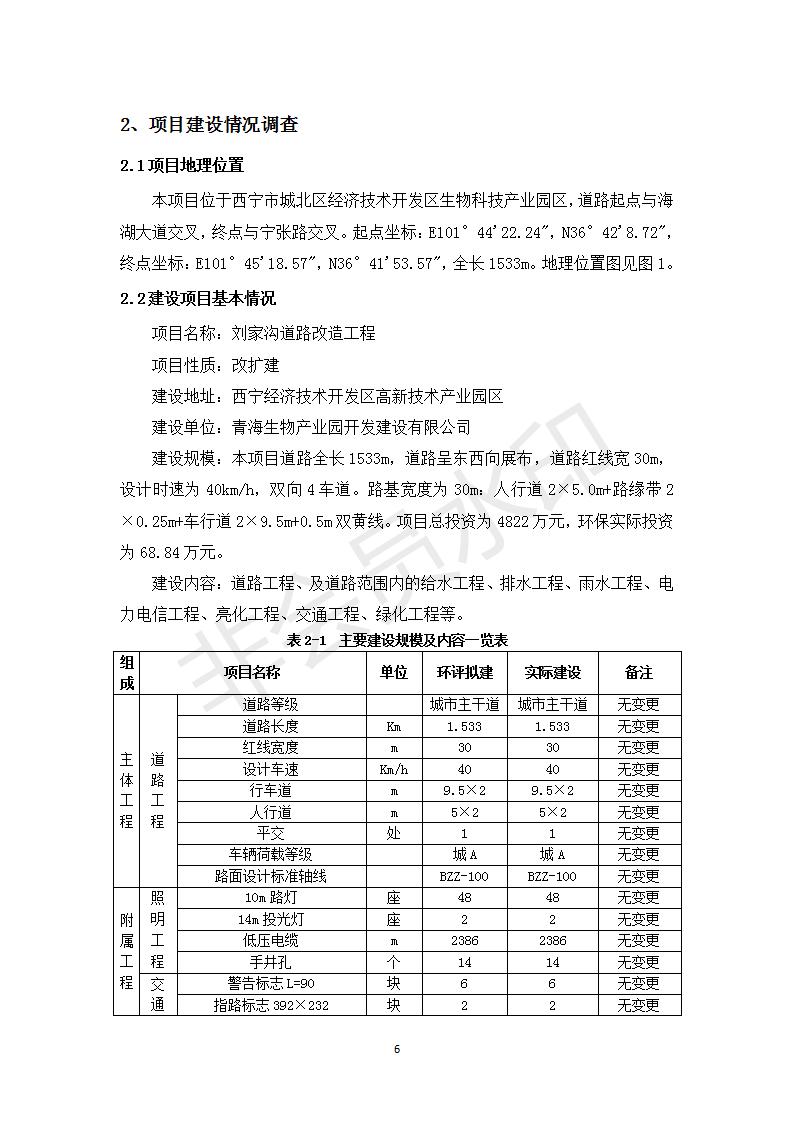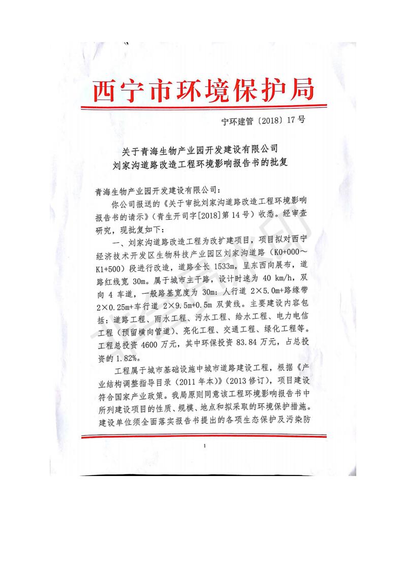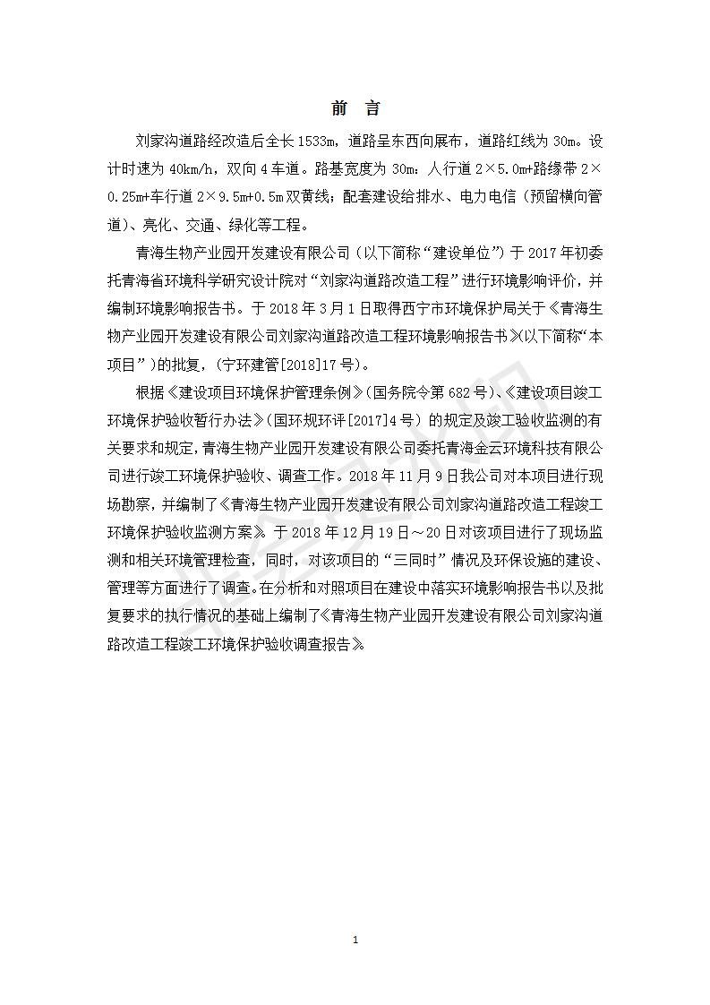 根據(jù)中華人民共和國(guó)務(wù)院令第682號(hào)《國(guó)務(wù)院關(guān)于修改〈建設(shè)項(xiàng)目環(huán)境保護(hù)管理?xiàng)l例〉的決定》和《建設(shè)項(xiàng)目竣工環(huán)境保護(hù)驗(yàn)收暫行辦法》(國(guó)務(wù)院令682號(hào)),劉家溝道路改造工程竣工環(huán)境保護(hù)驗(yàn)收內(nèi)容(包括竣工環(huán)境保護(hù)驗(yàn)收調(diào)查報(bào)告和驗(yàn)收意見)公示如下: 一、項(xiàng)目名稱:劉家溝道路改造工程 二、地點(diǎn):青海省西寧市城北區(qū)生物園區(qū) 三、建設(shè)單位:生物產(chǎn)業(yè)園開發(fā)建設(shè)有限公司 四、建設(shè)內(nèi)容:劉家溝道路經(jīng)改造后全長(zhǎng)1533m,道路呈東西向展布,道路紅線為30m。設(shè)計(jì)時(shí)速為40km/h,雙向4車道。 五、公示時(shí)間:二〇一九年三月十四日至二〇一九年四月十一日 六、聯(lián)系人:張工 公示期間,對(duì)上述公示內(nèi)容如有異議,請(qǐng)以書面形式反饋,個(gè)人須署真實(shí)姓名,單位須加蓋公章。