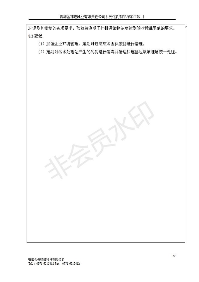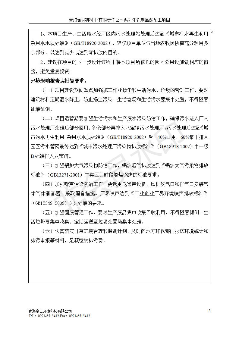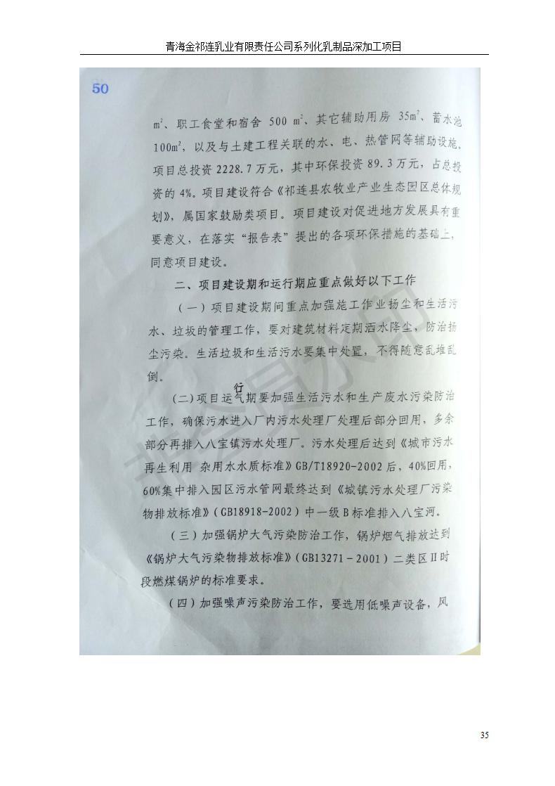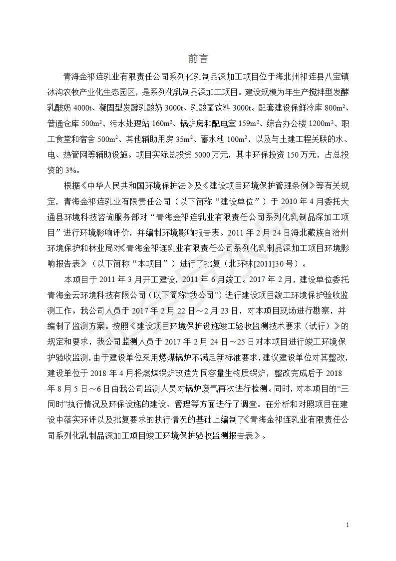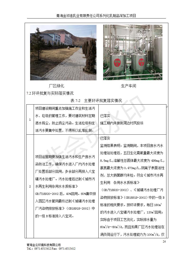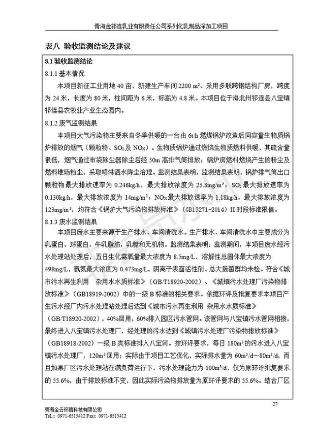 根據(jù)中華人民共和國國務(wù)院令第682號《國務(wù)院關(guān)于修改〈建設(shè)項(xiàng)目環(huán)境保護(hù)管理?xiàng)l例〉的決定》和《建設(shè)項(xiàng)目竣工環(huán)境保護(hù)驗(yàn)收暫行辦法》(國務(wù)院令682號),青海金祁連乳業(yè)有限責(zé)任公司系列化乳制品深加工項(xiàng)目(包括竣工環(huán)境保護(hù)驗(yàn)收監(jiān)測報(bào)告表和驗(yàn)收意見)公示如下。 一、項(xiàng)目名稱:青海金祁連乳業(yè)有限責(zé)任公司系列化乳制品深加工項(xiàng)目 二、地點(diǎn):海北藏族自治州祁連縣冰溝農(nóng)牧產(chǎn)業(yè)化生態(tài)園區(qū) 三、建設(shè)單位:青海金祁連乳業(yè)有限責(zé)任公司 四、建設(shè)內(nèi)容:本項(xiàng)目新征工業(yè)用地40畝,新建生產(chǎn)車間2200 m2、采用多聯(lián)跨鋼結(jié)構(gòu)廠房,跨度為24米,長度為80米,柱間距為6米,標(biāo)高為4.8米。廠房內(nèi)部根據(jù)產(chǎn)品生產(chǎn)工藝及工序要求分為不同的工作區(qū)域和車間辦公室。建設(shè)有保鮮冷庫800 m2、普通倉庫500m2、污水處理站房160 m2、鍋爐房和配電室159 m2、綜合辦公樓1200 m2、職工食堂和宿舍500 m2、其他輔助用房35 m2、蓄水池100 m2以及與土建工程相關(guān)聯(lián)的水、電、熱官網(wǎng)等輔助設(shè)施。 五、聯(lián)系人:張工 六、聯(lián)系電 話:0971-6515411 七、公示時間:二〇一九年七月十日至二〇一九年八月六日 公示期間,對上述公示內(nèi)容如有異議,請以書面形式反饋,個人須署真實(shí)姓名,單位須加蓋公章。