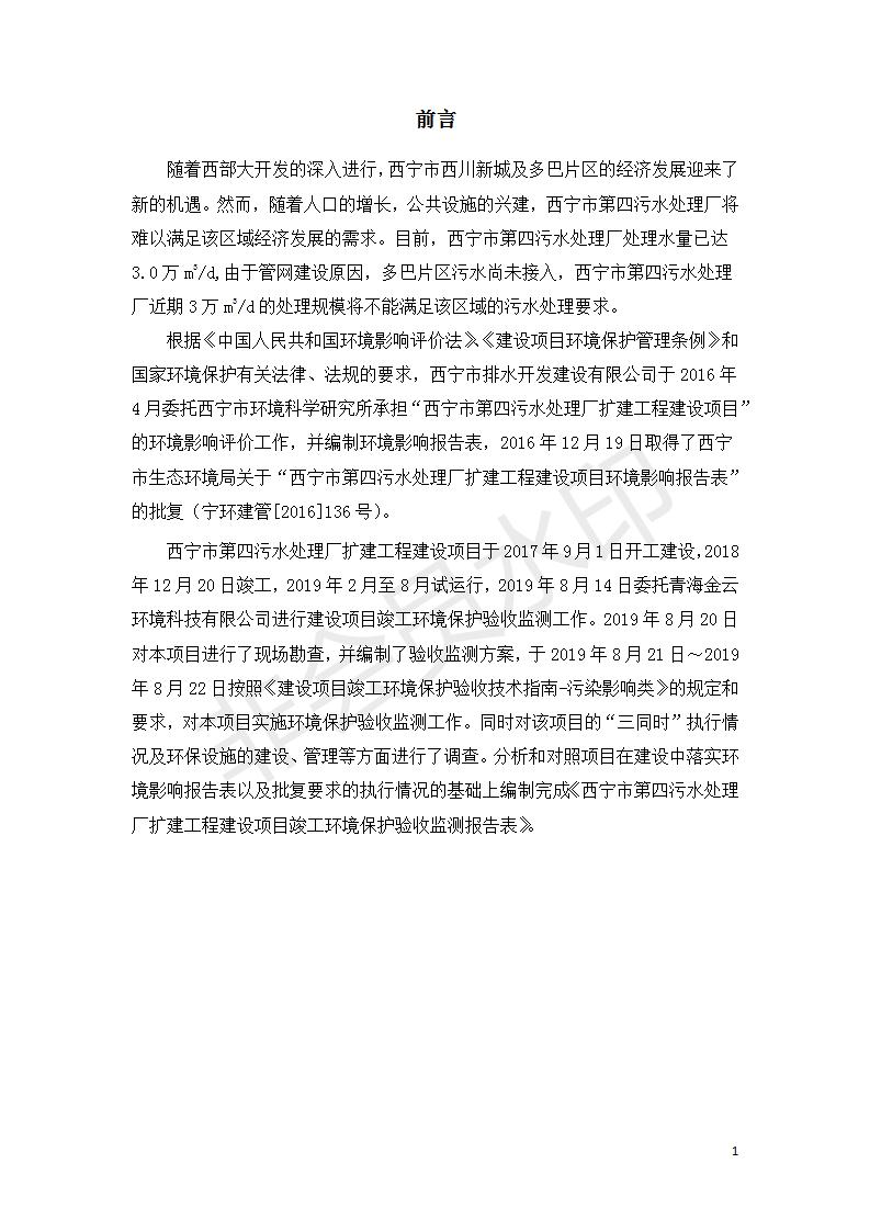 西寧市第四污水處理廠擴建工程建設(shè)項目竣工環(huán)境保護驗收監(jiān)測報告表公示發(fā)布日期:(2019-9-17) 點擊次數(shù):2733 |