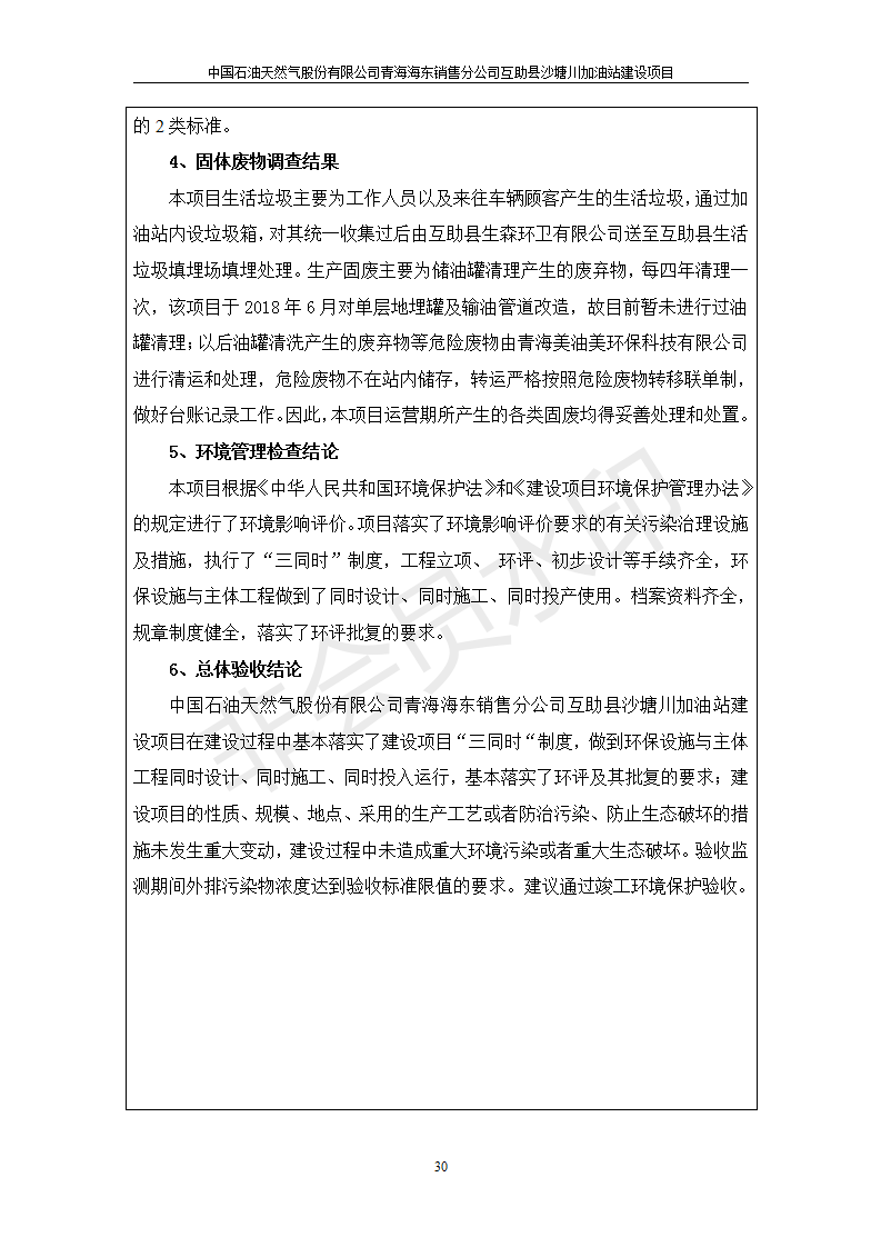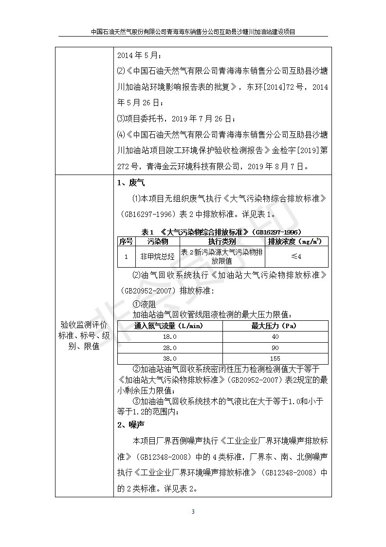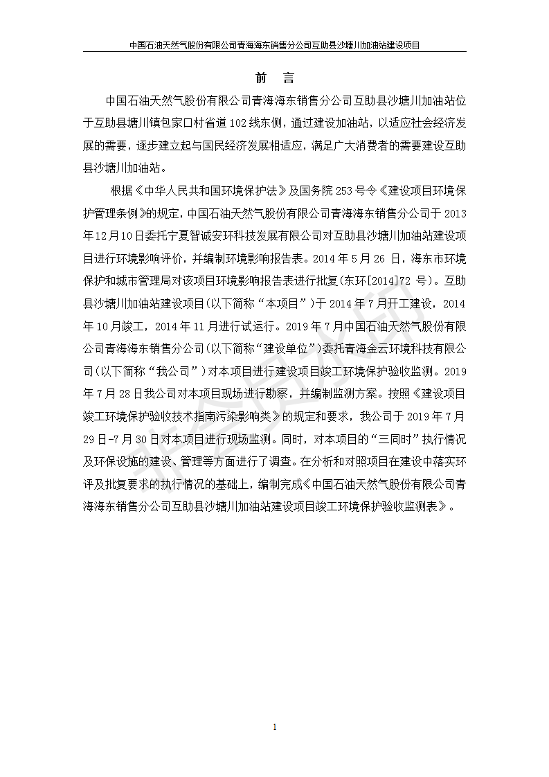 互助縣沙塘川加油站建設(shè)項(xiàng)目竣工環(huán)境保護(hù)驗(yàn)收監(jiān)測報(bào)告表發(fā)布日期:(2019-9-27) 點(diǎn)擊次數(shù):2250 |