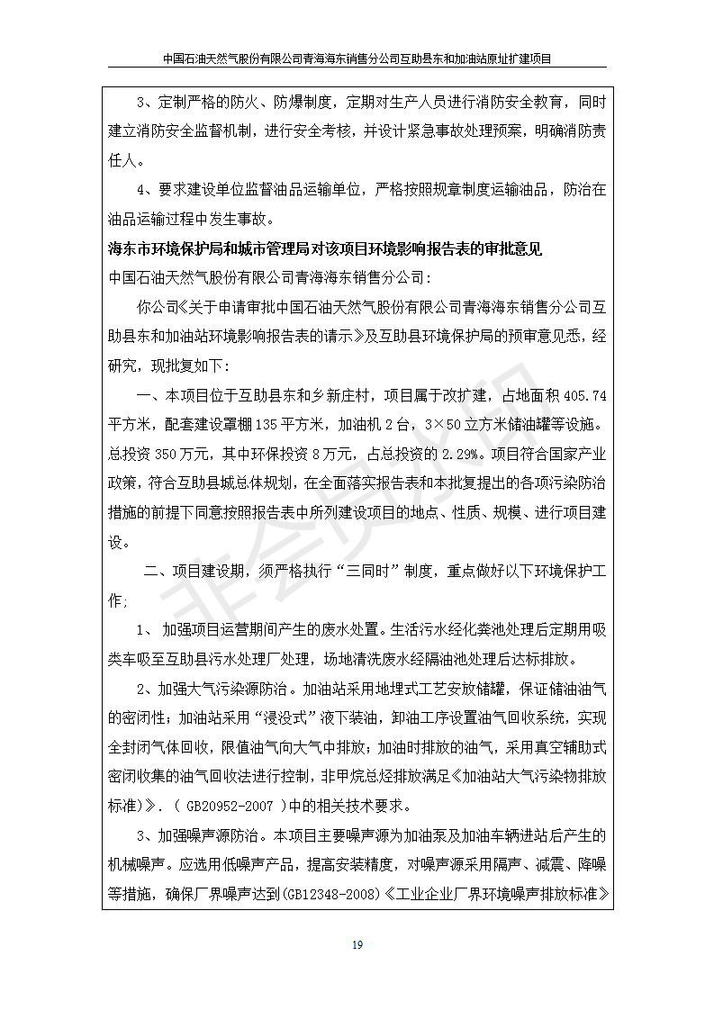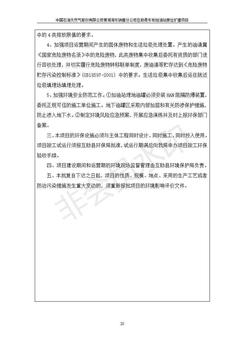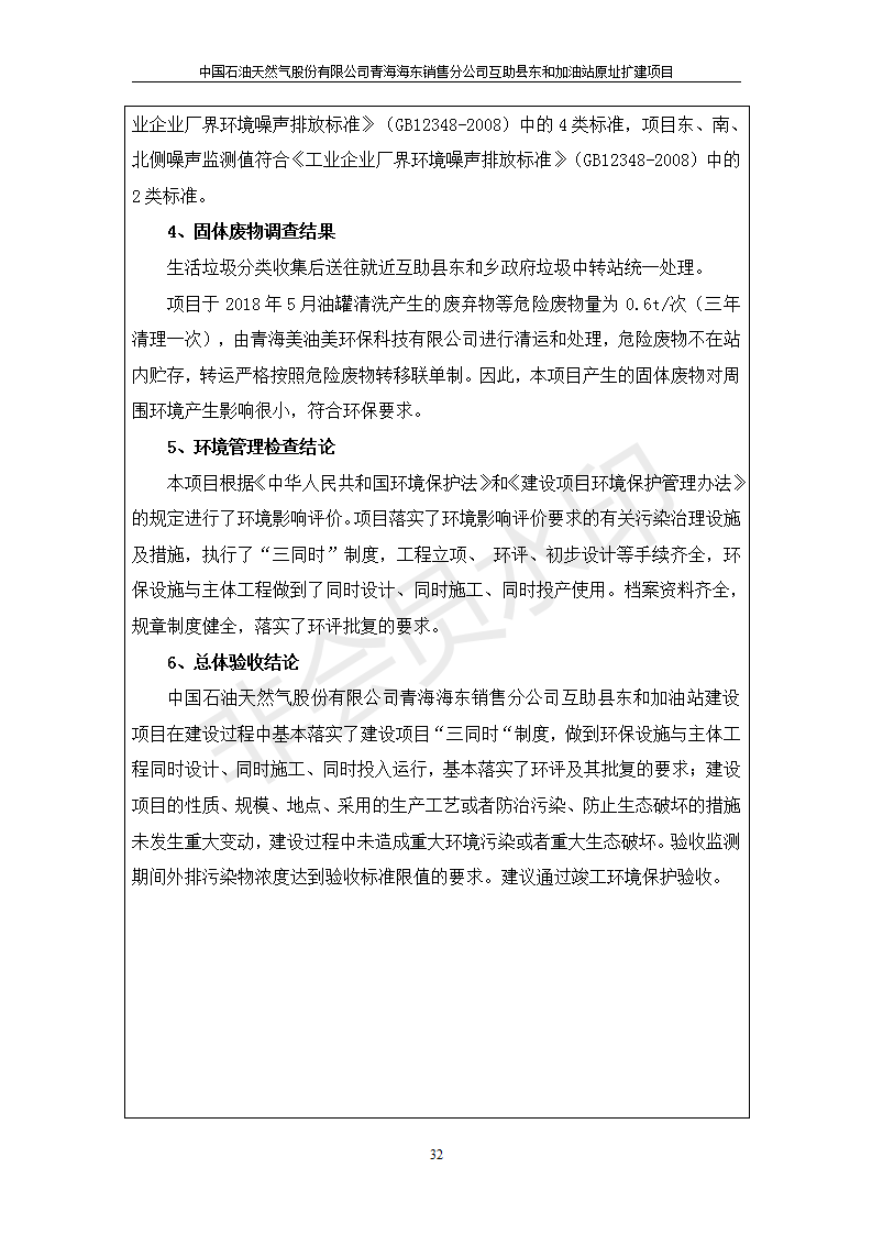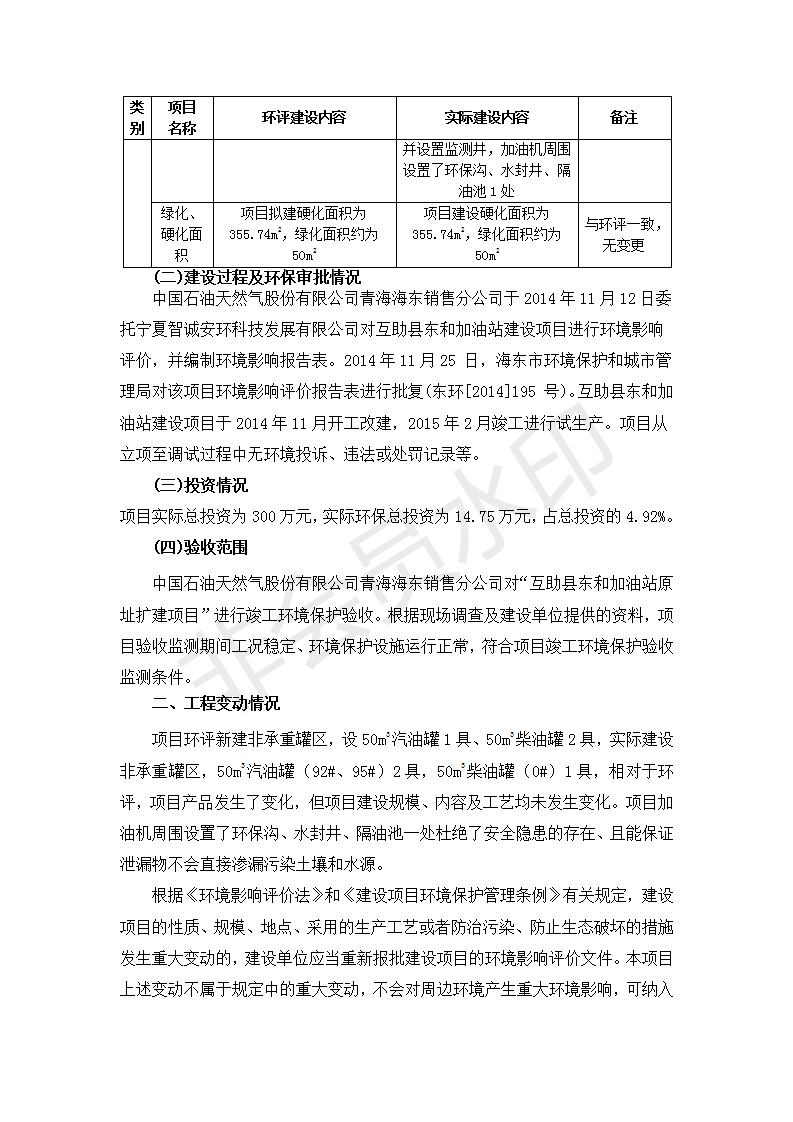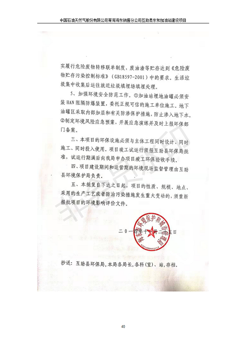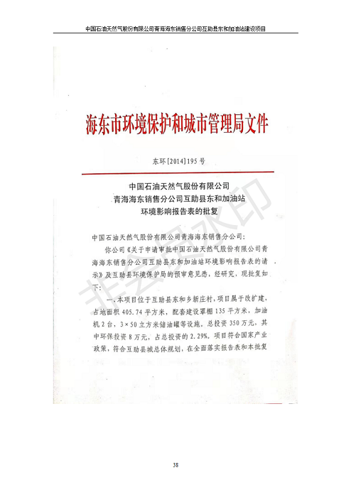 根據(jù)中華人民共和國國務院令第682號《國務院關于修改〈建設項目環(huán)境保護管理條例〉的決定》和《建設項目竣工環(huán)境保護驗收暫行辦法》(國務院令682號),互助縣東和加油站原址擴建項目(包括竣工環(huán)境保護驗收監(jiān)測報告表和驗收意見)公示如下。 一、項目名稱:互助縣東和加油站原址擴建項目 二、地點:互助縣威遠鎮(zhèn)東和鄉(xiāng)新莊村 六、聯(lián)系電話:0971-6515411 七、公示時間:二〇一九年九月二十七日至二〇一九年十月二十九日 公示期間,對上述公示內容如有異議,請以書面形式反饋,個人須署真實姓名,單位須加蓋公章。