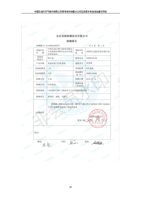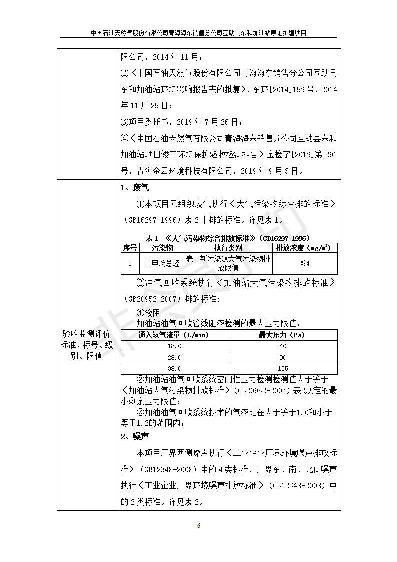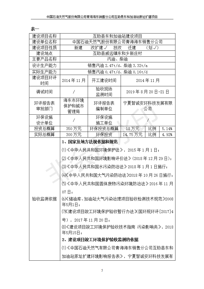 互助縣東和加油站原址擴建項目 竣工環(huán)境保護驗收監(jiān)測報告表公示發(fā)布日期:(2019-9-27) 點擊次數(shù):2504 |
