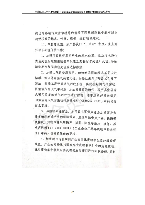 | 上一篇:糧油、食品、飼料等加工綜合園區(qū)項目竣工環(huán)境保護驗收監(jiān)測報告表公示 | 下一篇:互助縣東環(huán)路加油站改建項目竣工環(huán)境保護驗收監(jiān)測報告表公示 |