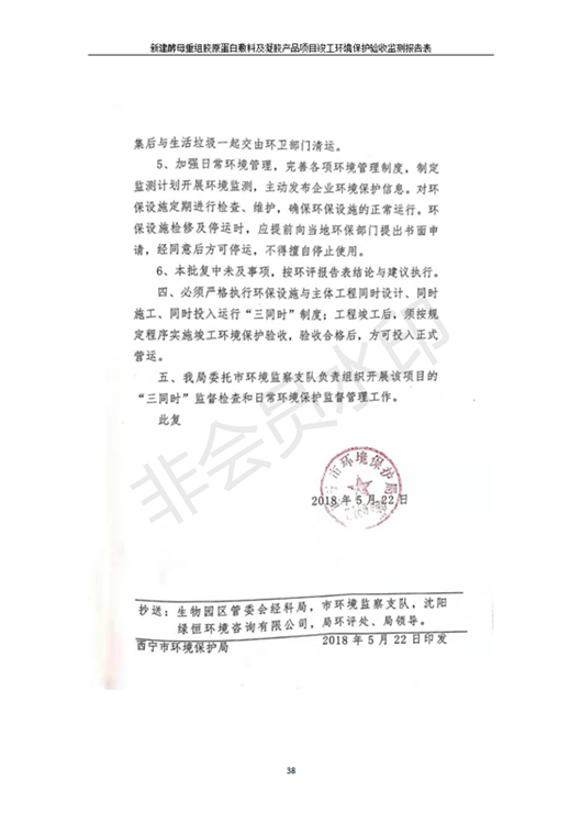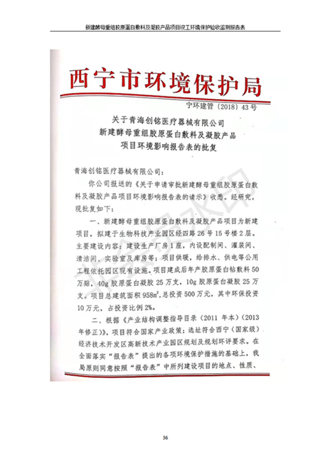 根據(jù)中華人民共和國國務(wù)院令第682號《國務(wù)院關(guān)于修改〈建設(shè)項(xiàng)目環(huán)境保護(hù)管理?xiàng)l例〉的決定》和《建設(shè)項(xiàng)目竣工環(huán)境保護(hù)驗(yàn)收暫行辦法》(國務(wù)院令682號),新建酵母重組膠原蛋白敷料及凝膠產(chǎn)品項(xiàng)目(包括竣工環(huán)境保護(hù)驗(yàn)收監(jiān)測報(bào)告表和驗(yàn)收意見)公示如下。 一、項(xiàng)目名稱:新建酵母重組膠原蛋白敷料及凝膠產(chǎn)品項(xiàng)目 二、地點(diǎn):西寧市生物園區(qū)經(jīng)四路26號15號樓2層 五、聯(lián)系人:董繼風(fēng) 六、聯(lián)系電話:18606125050 七、公示時(shí)間:二〇二〇年一月十三日至二〇二〇年二月十二日 公示期間,對上述公示內(nèi)容如有異議,請以書面形式反饋,個(gè)人須署真實(shí)姓名,單位須加蓋公章。
