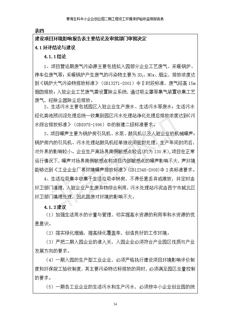 據(jù)中華人民共和國國務(wù)院令第682號《國務(wù)院關(guān)于修改〈建設(shè)項目環(huán)境保護管理條例〉的決定》和《建設(shè)項目竣工環(huán)境保護驗收暫行辦法》(國務(wù)院令682號),青海生科中小企業(yè)創(chuàng)業(yè)園二期工程建設(shè)項目(包括竣工環(huán)境保護驗收監(jiān)測報告表和驗收意見)公示如下。 一、項目名稱:青海生科中小企業(yè)創(chuàng)業(yè)園二期工程建設(shè)項目 二、地點:西寧市生物園區(qū)經(jīng)四路26號 五、聯(lián)系人:張憲周 六、聯(lián)系電話:13997290897 七、公示時間:二〇二〇年二月三日至二〇二〇年二月二十八日 公示期間,對上述公示內(nèi)容如有異議,請以書面形式反饋,個人須署真實姓名,單位須加蓋公章。