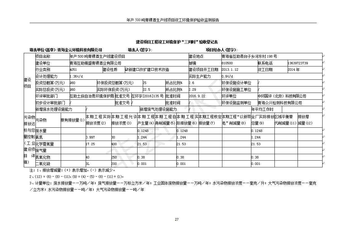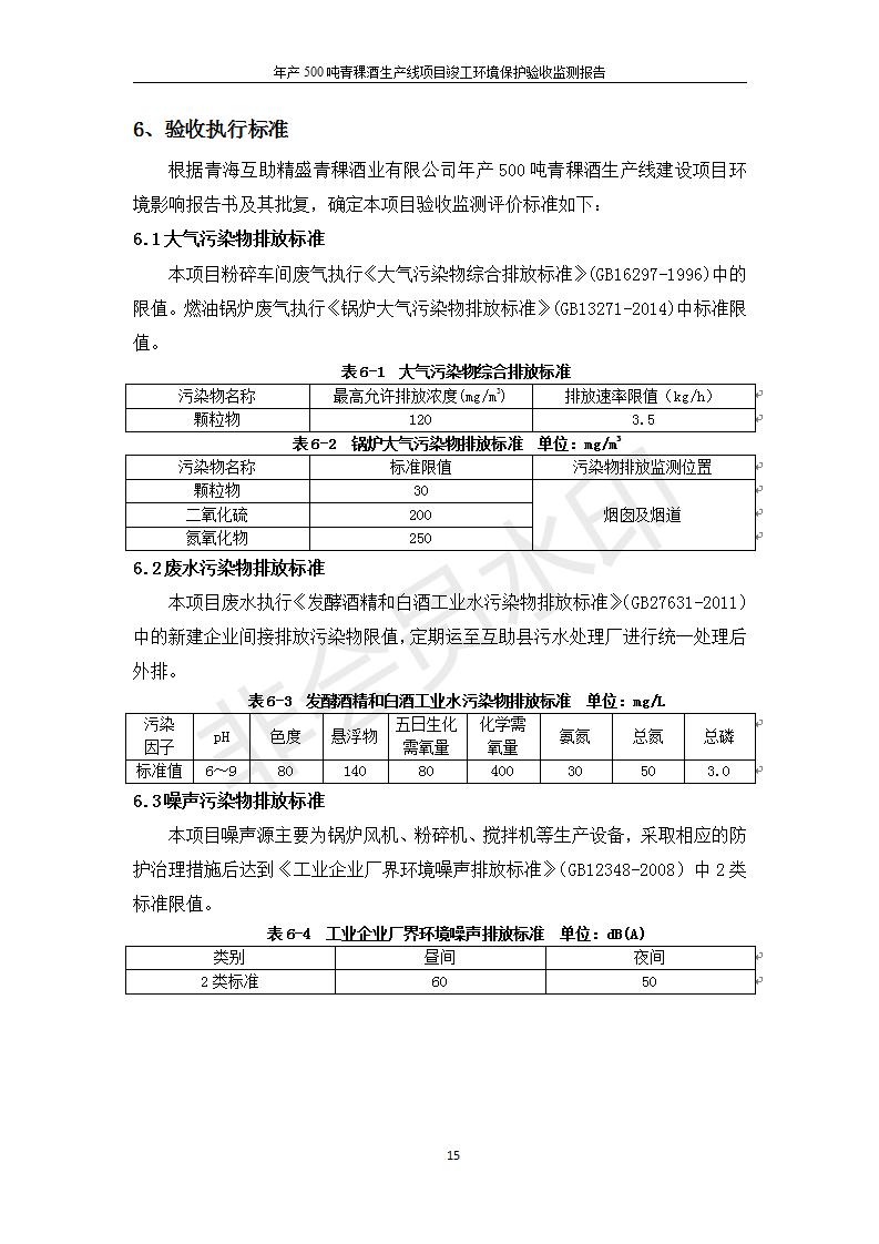 根據(jù)中華人民共和國國務(wù)院令第682號《國務(wù)院關(guān)于修改〈建設(shè)項(xiàng)目環(huán)境保護(hù)管理?xiàng)l例〉的決定》和《建設(shè)項(xiàng)目竣工環(huán)境保護(hù)驗(yàn)收暫行辦法》(國務(wù)院令682號),綜合檢測實(shí)驗(yàn)室建設(shè)項(xiàng)目(包括竣工環(huán)境保護(hù)驗(yàn)收監(jiān)測報(bào)告表和驗(yàn)收意見)公示如下。 一、項(xiàng)目名稱:青海互助精盛青稞酒業(yè)有限公司年產(chǎn)500噸青稞酒業(yè)生產(chǎn)線建設(shè)項(xiàng)目 二、地點(diǎn):青海省海東市互助土族自治縣臺子鄉(xiāng)河?xùn)|村198號