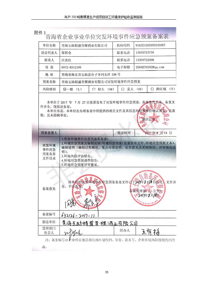 青;ブ⑶囡茦I(yè)有限公司年產(chǎn)500噸青稞酒業(yè)生產(chǎn)線建設(shè)項(xiàng)目竣工環(huán)境保護(hù)驗(yàn)收監(jiān)測報(bào)告表公示發(fā)布日期:(2020-4-27) 點(diǎn)擊次數(shù):2564 |