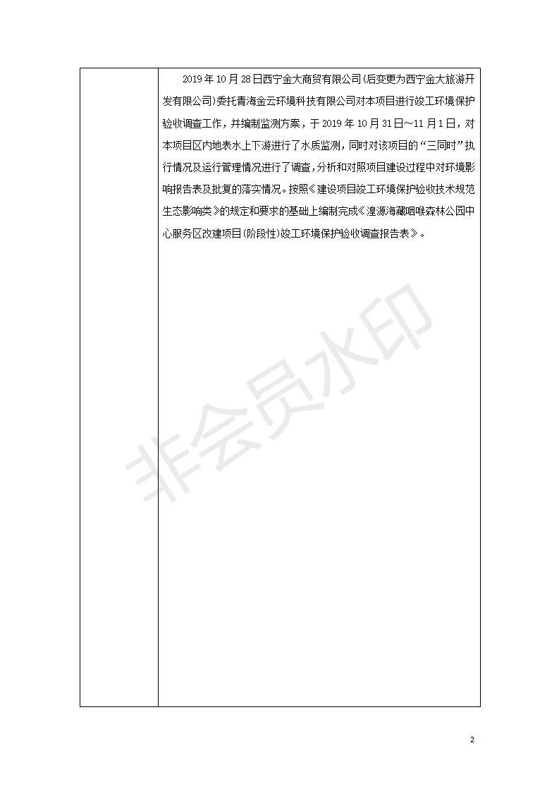根據(jù)中華人民共和國(guó)國(guó)務(wù)院令第682號(hào)《國(guó)務(wù)院關(guān)于修改〈建設(shè)項(xiàng)目環(huán)境保護(hù)管理?xiàng)l例〉的決定》和《建設(shè)項(xiàng)目竣工環(huán)境保護(hù)驗(yàn)收暫行辦法》(國(guó)務(wù)院令682號(hào)),湟源海藏咽喉森林公園中心服務(wù)區(qū)改建項(xiàng)目(階段性),(包括竣工環(huán)境保護(hù)驗(yàn)收調(diào)查表和驗(yàn)收意見(jiàn))公示如下。 一、項(xiàng)目名稱:湟源海藏咽喉森林公園中心服務(wù)區(qū)改建項(xiàng)目(階段性) 竣工環(huán)境保護(hù)驗(yàn)收調(diào)查表 二、地點(diǎn):青海省湟源縣東峽鄉(xiāng)大黑溝 三、建設(shè)單位:西寧金大旅游開(kāi)發(fā)有限公司 四、建設(shè)內(nèi)容:本次階段性驗(yàn)收以自然景觀為主,建設(shè)內(nèi)容為濱水景觀帶、觀景臺(tái)、景區(qū)道路及基礎(chǔ)設(shè)施。項(xiàng)目范圍從景區(qū)大門(mén)至中心位置,全長(zhǎng)4800m。 五、聯(lián)系人:張工 六、聯(lián)系電 話:0971-6515411 七、公示時(shí)間:二〇二〇年四月二十九日至二〇二〇年五月二十八日 公示期間,對(duì)上述公示內(nèi)容如有異議,請(qǐng)以書(shū)面形式反饋,個(gè)人須署真實(shí)姓名,單位須加蓋公章。