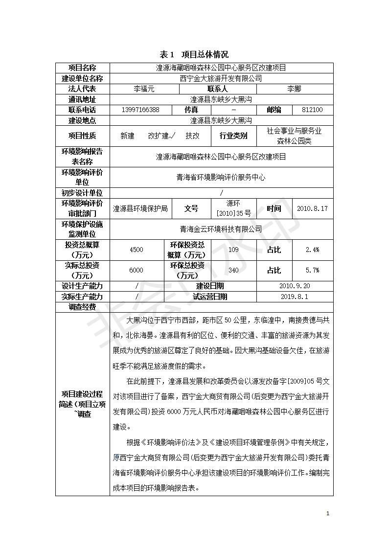 湟源海藏咽喉森林公園中心服務(wù)區(qū)改建項(xiàng)目(階段性)竣工環(huán)境保護(hù)驗(yàn)收調(diào)查表發(fā)布日期:(2020-4-29) 點(diǎn)擊次數(shù):3123 |
