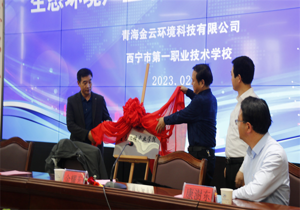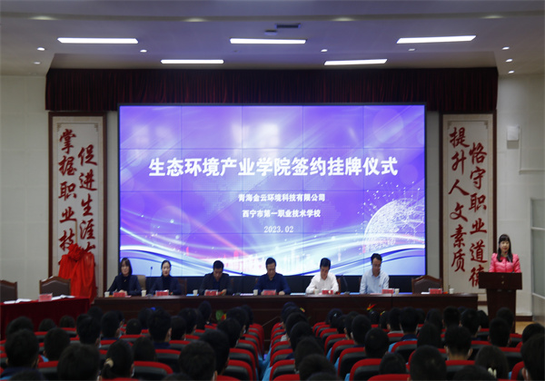 為深入貫徹落實職業(yè)教育現(xiàn)場推進會精神,深化產(chǎn)教融合校企合作,2023年2月23日,西寧市第一職業(yè)技術學校與青海金云環(huán)境科技有限公司隆重舉行校企生態(tài)環(huán)境產(chǎn)業(yè)學院簽約掛牌儀式。西寧市教育局領導,西寧市第一職業(yè)技術學校領導及生態(tài)環(huán)境產(chǎn)業(yè)學院師生,金云科技高層領導出席簽約儀式。儀式由西寧第一職業(yè)技術學校黨委書記、校長金耀東主持。